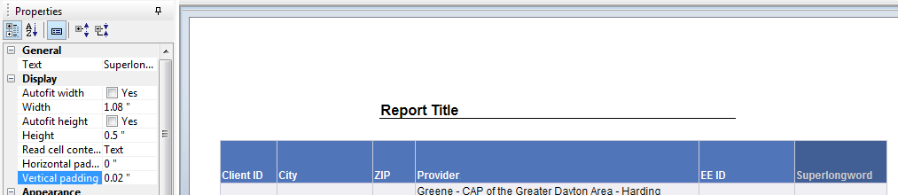 The next step is what I like to call squeeze and wrap.. Ok, I don’t really like to call it that, but it kind of works. Since the Provider column is taking up so much room, it is going to need to lose some real estate.